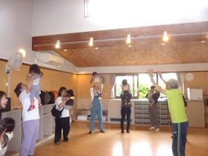 地域の未就園児親子の方々も遊びに来てくれたので、親子で触れ合いながら一緒に