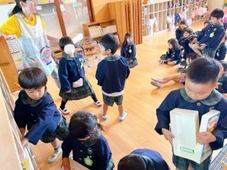 年中組になって、ピカピカの制服を着て登園している年中さん。