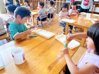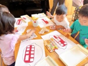 今日は、年中さんが自分のハサミを使って遊びました!