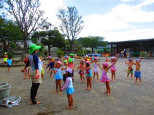 年長児がグループの友達や学年の友達とこいのぼりづくりを楽しみました。
