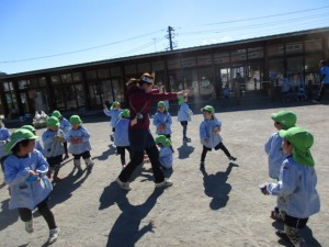 合間をぬって、年長児が園庭に出てきました。踊りをおどるそうです。