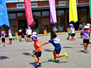 年長児も、クラスの友達と知恵を出し合いながら力を合わせて