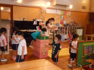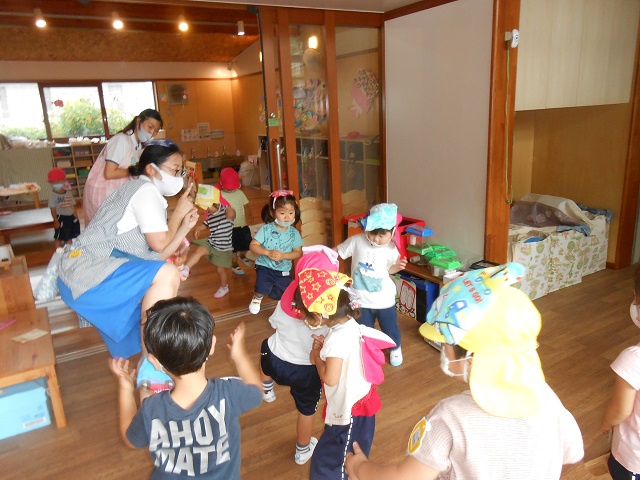 年少さんは年中組を、年中さんは年長組を見に行く姿もありました。