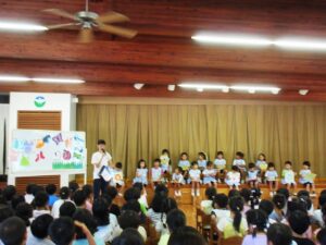 さて、昨日、集会で年長・年中さんが持っていたうちわですが・・・