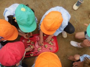 「ヨイショ!ヨイショ!」「う~んしょ!」みんな力いっぱい引っ張っています。つくし組といちょう組、きのこ組とかえで組がペアクラスになって一緒に引っ張りました。どちらのクラスもとても力強かったです。