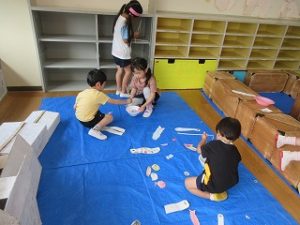砂遊び、滑り台、ジャングルジム、ボール遊び等、青空のもと、子どもたちの楽しそうな声があちこちから聞こえてきます。「ブランコ楽しいね!」「滑り台もやろうよ!」「うん!!」明日はどんな遊びが出てくるでしょうか。