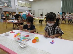 先生の話をよく聞いて、最後まで作ることを楽しんでいた子どもたち、「これぼくのだよ!」「あれ、私の!」と自分の作品を嬉しそうに見ています。もも組の保護者の皆様、本日は参観懇談会にお越しいただきありがとうございました。