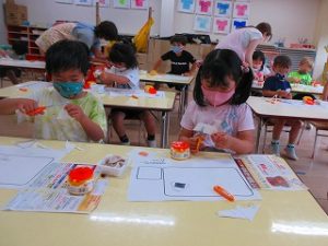 年長組はクラスの友達と明日について話し合ったり、使うグッズが壊れていないか、友達や先生と確認したりしました。「明日、みんなで頑張ろうね!」「うん!がんばろう!エイエイオー!」各クラスから張り切る声が聞こえてきました。