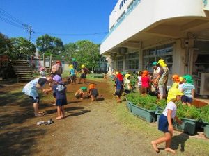 1年生が、一人一人に優しく接してくれたり、褒めてくれたりしたことで、園児は楽しんで授業体験に参加していました。