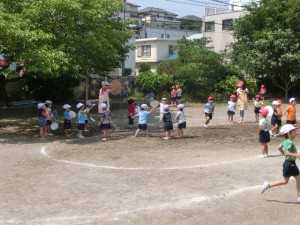 明日は「夕涼み会」があります。年少の子ども達はその時の踊りを待ちきれずに踊っていたようです。楽しいことに暑さは関係ないようでした。
