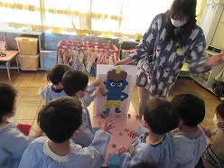 絞り染めにした模様は一人一人異なり、個性が光っていました。園庭に明るい花が咲いたようで、心も明るくなります。遊んでいた年中さん、年少さんも近くで嬉しそうに見ていました。