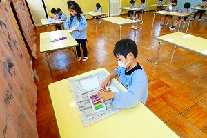 さすが年長さんです。色とりどりのとても素敵なうろこを描いていました。