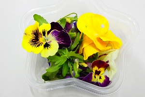 さて、右写真のビオラやパンジーに誰かが隠れています。