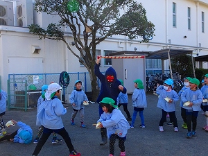 赤鬼が登場すると、園長だと思い、にこやかに駆け寄る子が多かったのですが、