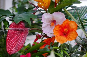 ハイビスカスやブーゲンビリアなど、鮮やかな花たちからパワーを感じます。(於:西武線所沢駅構内)