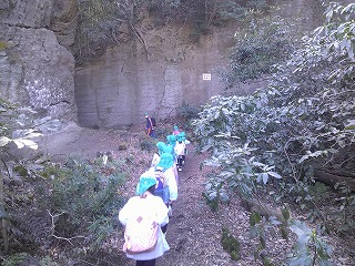 西友の横から「磨崖仏」に向けて急な階段を上っていきます。たかとりの子どもたちは、息も切らさずどんどん上がっていきます。