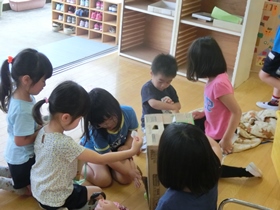 先生たちが「グリーンマントのピーマンマン」を見せてくれました。