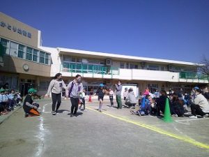 今日は未就園児見学説明会だからです。広い園庭で遊んでくれたかな。