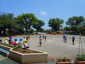 くま組、参観懇談会です。明るい日差しの中、園庭で遊ぶ様子を見学していただきました。
