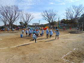 年長さんはドッジボールです。ボールが見えない写真でごめんなさい。