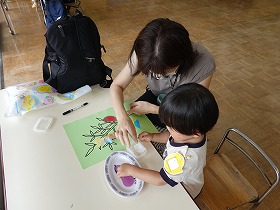 13人そろって記念撮影です。先生方からはペープサート「一寸法師」のプレゼントです。