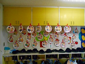 皮をむいた柿は、消毒して園長室前の軒先につるしました。