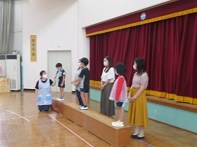 担任の先生が集合して『おおきなかぶ』の劇を見せました。