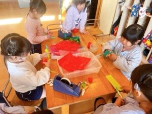 進級前に楽しいことをしよう!とクラスの友達と相談したり、準備をしたりしている