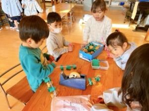 ピンができると、どうやって遊ぶか、数字を付けようか…等と子ども同士でよく話しな