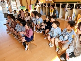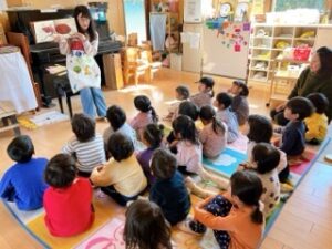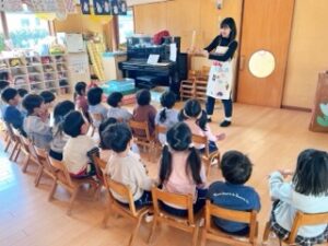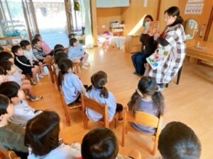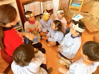 今日の帰りには、年少・いちご組に絵本クラブのお母さん達が読み聞かせに来てくださ