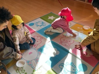 初めに親子でおもちのふれあい遊びをしました❤️皆ニコニコ😊