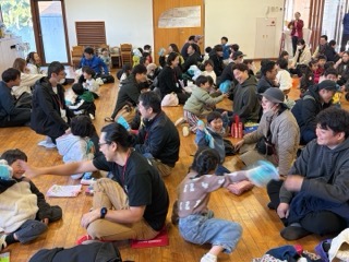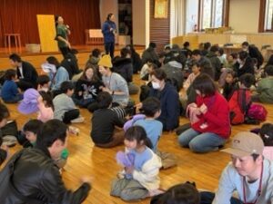 初めに、学年の皆で集まって、ふれあい遊びをしました!