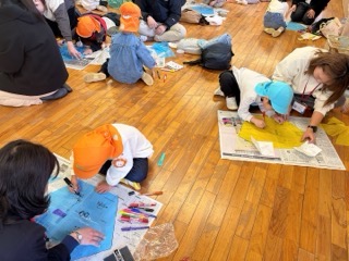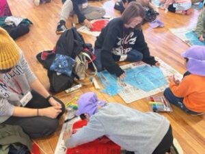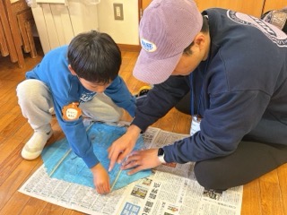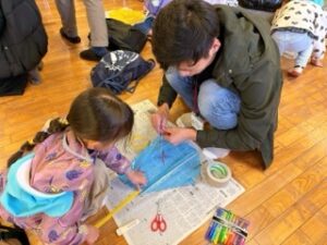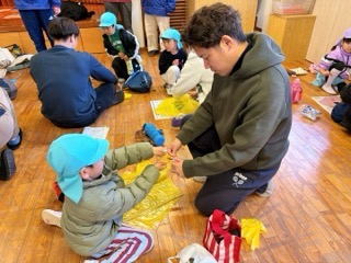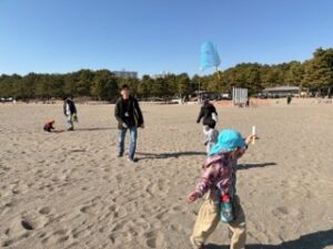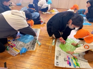 年長組は凧作りをして、その凧を海の公園へ揚げに行きます✨