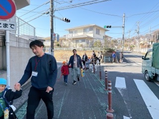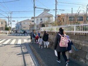道中も車に気を付けながら、お家の人と手を繋いで歩いて行きました。