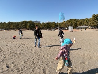 お父さんやお母さんに支えてもらいながら一緒に凧揚げができました😊
