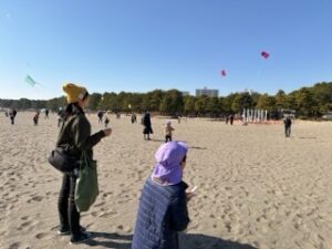 糸をどんどん伸ばして、だんだん高くなる凧を見て嬉しそうな子ども達でした❤️
