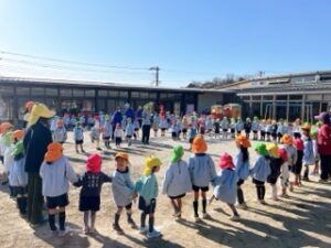 同じクラスの友達とではなく、いろいろな学年が混ざり合って手を繋ぎました👐