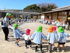どちらの曲も隣の友達と手を繋いで歩いたり、回ったり・・・