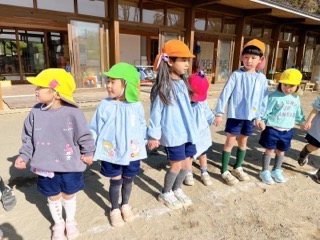 同じクラスの友達とではなく、いろいろな学年が混ざり合って手を繋ぎました👐