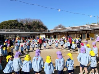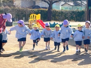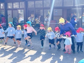 どちらの曲も隣の友達と手を繋いで歩いたり、回ったり・・・