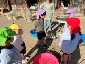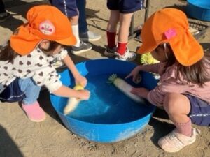幼稚園の皆も食べられるように、年長組がダイコンをキレイに洗ってくれていました✨