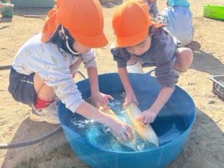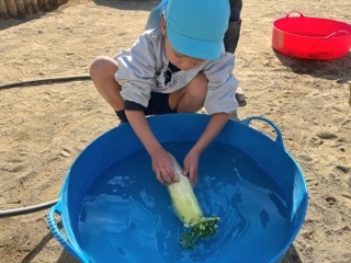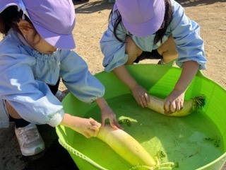幼稚園の皆も食べられるように、年長組がダイコンをキレイに洗ってくれていました✨