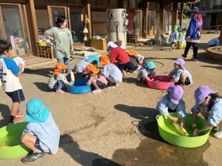 年長児の姿にすぐに気付いて年中・年少さんが見に来ていました!