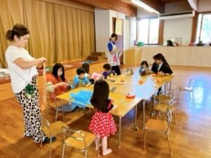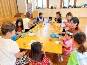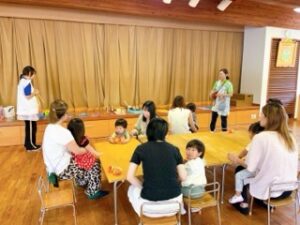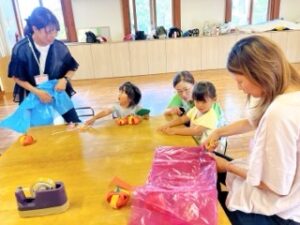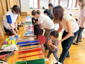 先生のお話を聞き、“どんなものを作ろうかな~?”と、お母さんと一緒に楽しみに、仮