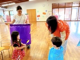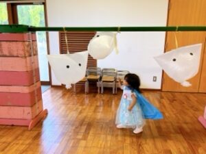 素敵なものが完成したら、皆で仮装して、幼稚園の中を歩いて回ることにしました🎵
