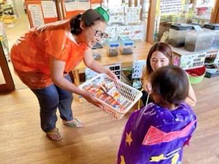 園内の3人のカボチャさんに会って「Trick or Treat!」と言うと、良いものが