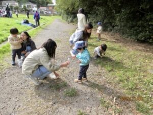 皆が揃ったら、まず初めにどんぐり探しをしました!