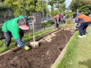 その隣では、横浜市のボランティアの方々が花壇の整備をしてくださっていました🌼