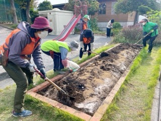 その隣では、横浜市のボランティアの方々が花壇の整備をしてくださっていました🌼