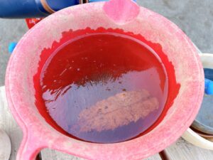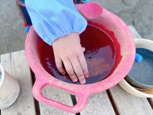 もも組のバケツの中には、水と一緒に落ち葉を入れていました。